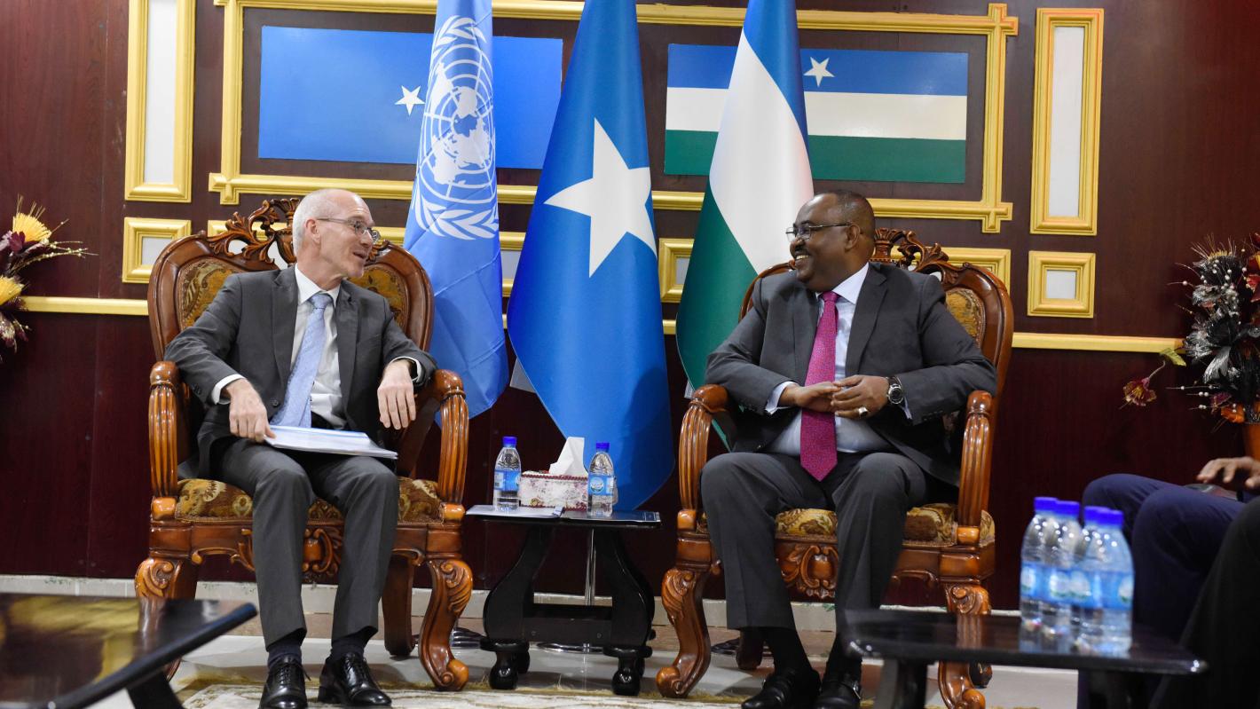 The Secretary-General’s Special Representative for Somalia, James Swan, visited yesterday Garowe, the capital of Puntland, a Federal Member State in the country’s northeast, to meet with President Said Abdullahi Mohamed Deni and hold discussions on key UN programmes and activities.