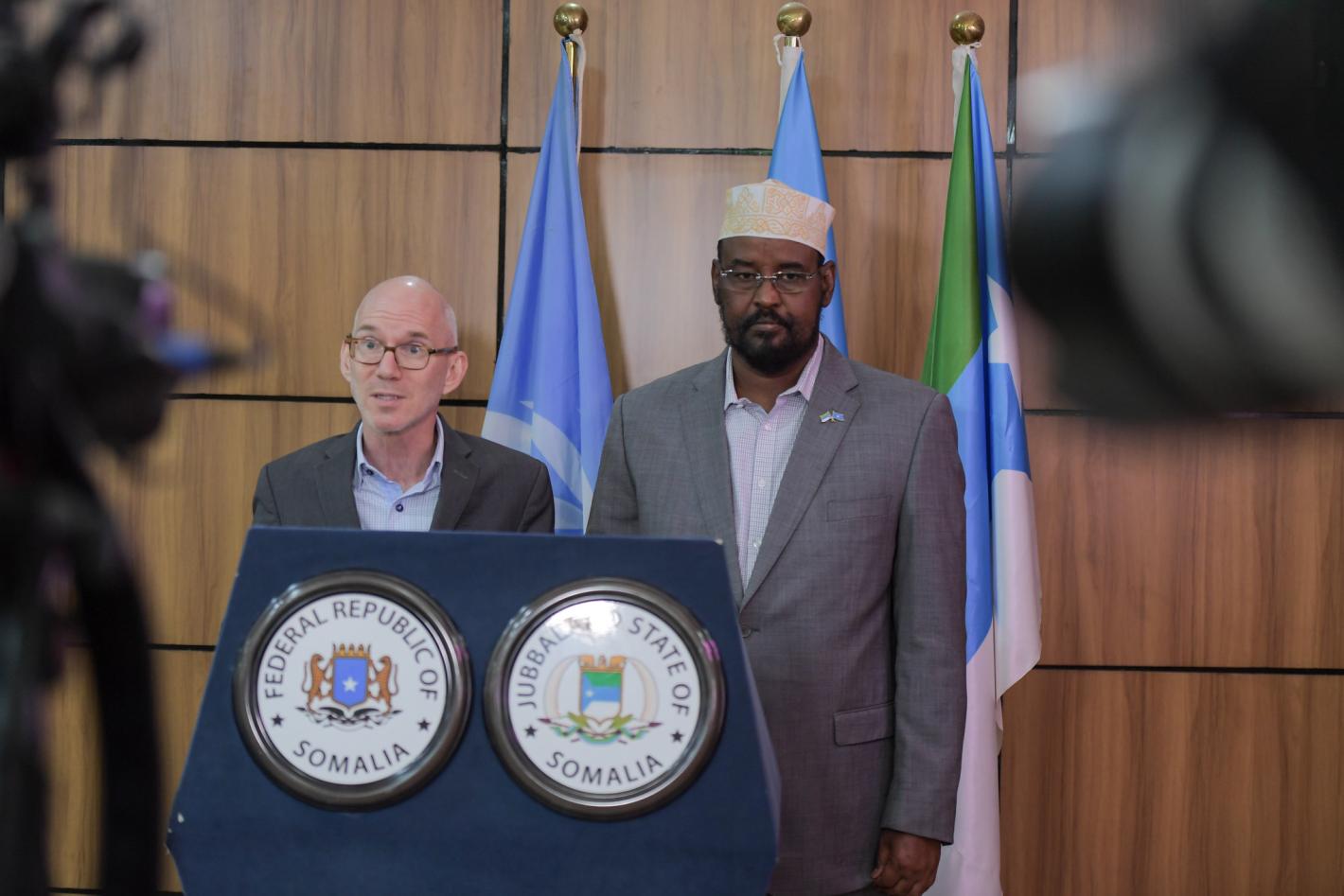 Good afternoon, Mr. President. I would like to begin by thanking you – President Ahmed Mohamed Islam ‘Madobe’ – and your team, for the warm welcome that we’ve received here in Kismayo today. I’m here with colleagues from…