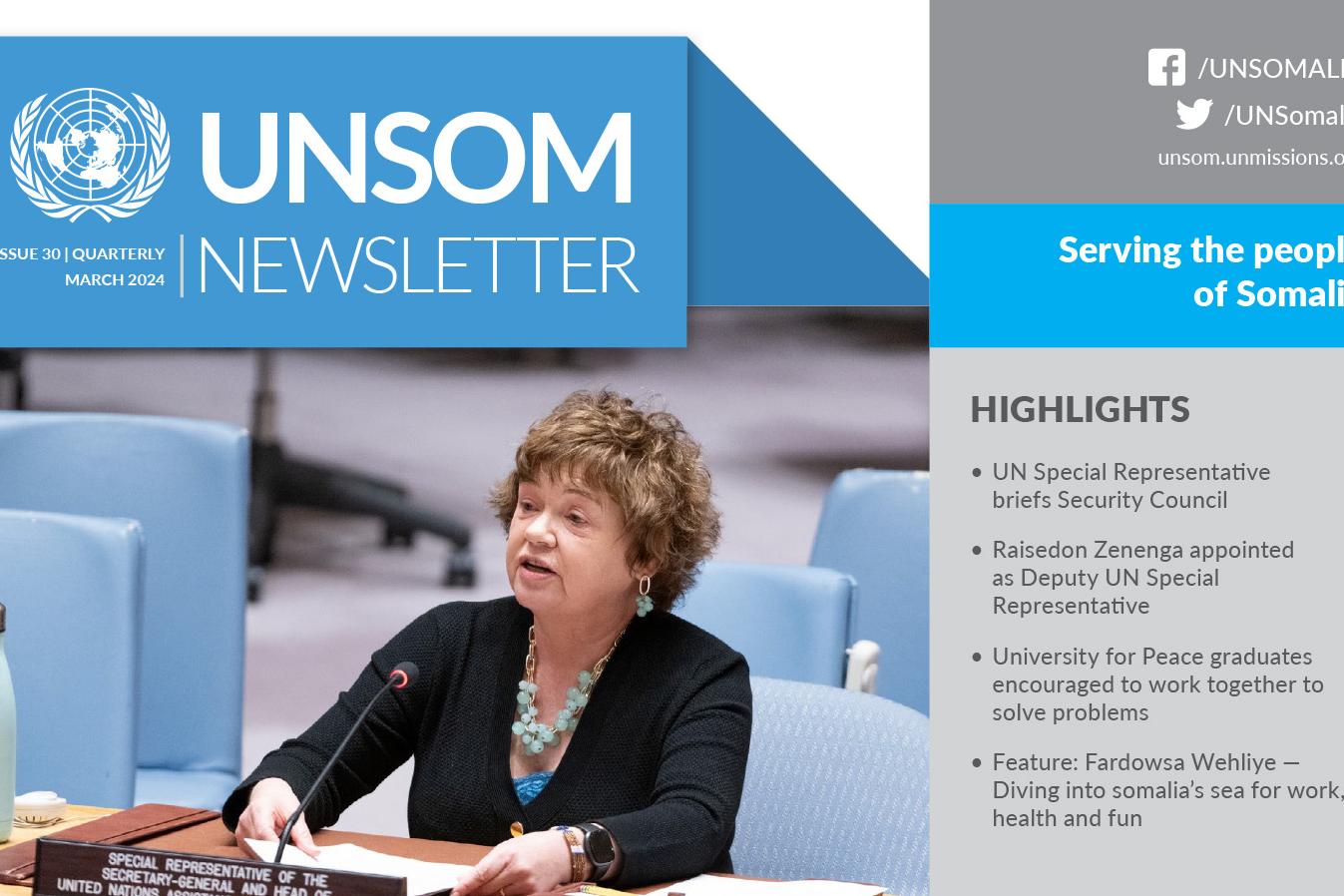 The United Nations Assistance Mission in Somalia (UNSOM) was established on 3 June 2013. Its mandate ended on 31 October 2024, subsumed to the United Nations Transitional Assistance Mission in Somalia (UNTMIS).