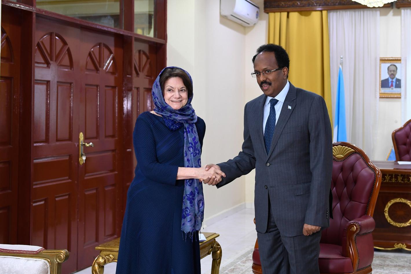 Mogadishu – H.E. President Mohamed Abdullahi Mohamed and H.E. Prime Minister Hassan Ali Khaire today welcomed the United Nations Under-Secretary-General for Political and Peacebuilding Affairs Rosemary DiCarlo to Mogadishu…
