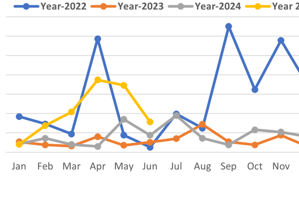 Trends in violence affecting civilians by conventional parties and other armed groups from January 2022 to June 2025.
