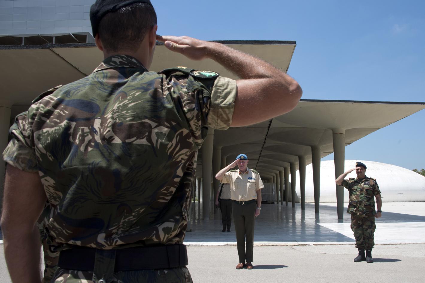 UNIFIL Head of Mission and Force Commander, Major General Michael Beary, salutes the Lebanese Armed Forces guard of honour in Yarze, Beirut.