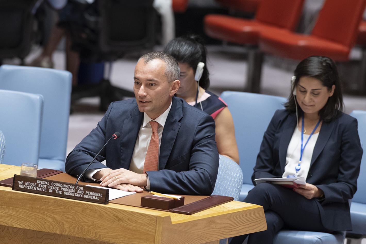 UN Special Coordinator Nickolay Mladenov briefing the Security Council on the Situation in the Middle East and reporting on UNSCR 2334 (2016) - 19 June 2018 (UN Photo/Eskinder Debebe)