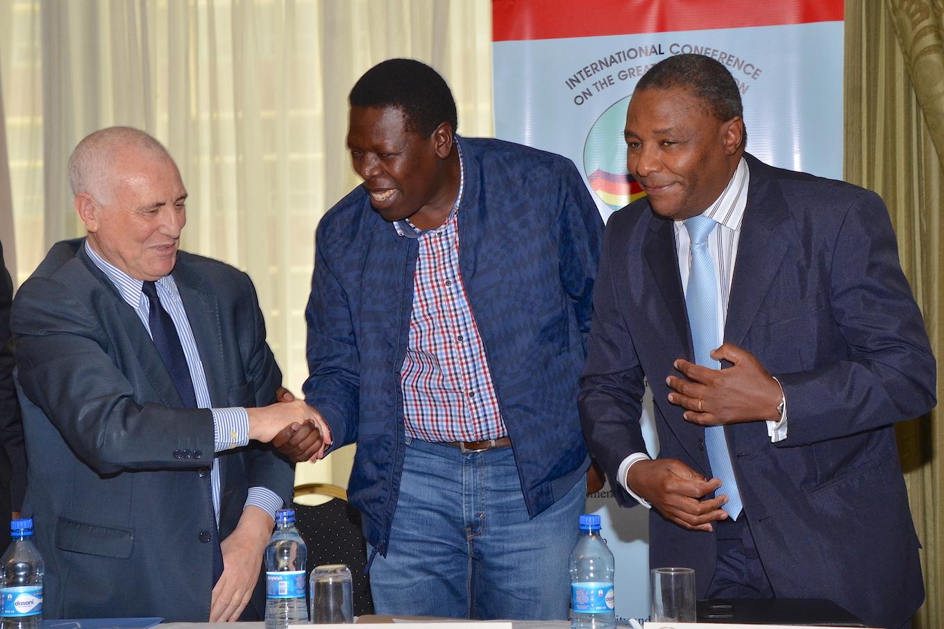Participants at the ICGLR Multifunctional Youth Forum (from left to right: Said Djinnit, UN Special Envoy for the Great Lakes region; Eugene Wamalwa, Kenya Minister of Public Service, Youth and Gender Affairs; and Zachary Muburi Muita, ICGLR Executive-Secretary.