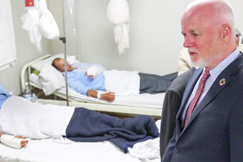 On 4 May 2017, Oumar Kane, Head of Office, Sector West, UNAMID, inspected work being undertaken by the Mission in support of the state government to prevent soil erosion and damage from flash floods along Kaja River, Ardamata…