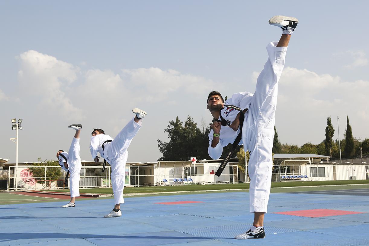 Ali Wafik Krayani during a kicking demonstration in the taekwondo competition organized by the Korean Battalion of UNIFIL.