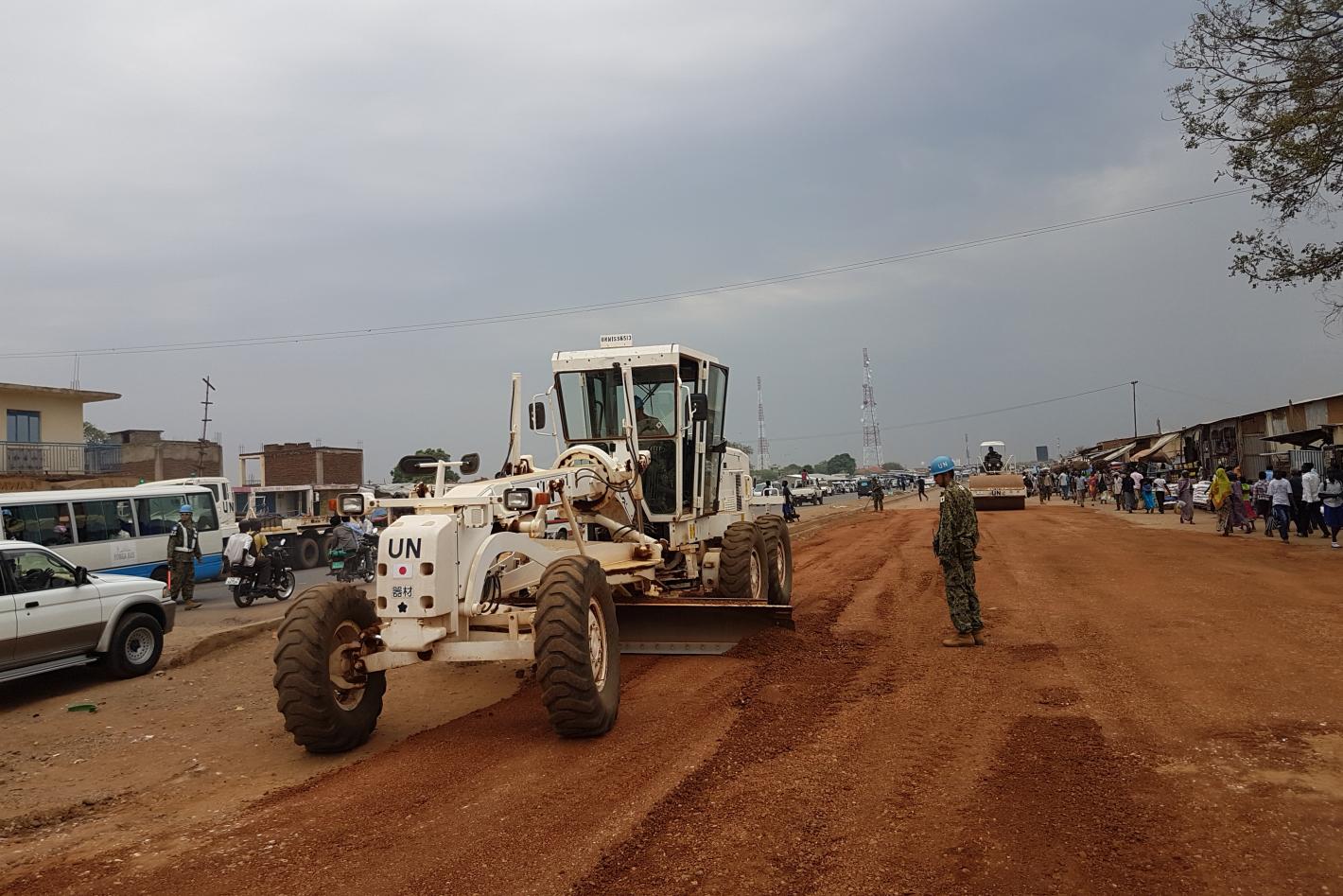 UNMISS engineering troops repairing a stretch of road near Gudele Bridge, Juba. In total, UNMISS engineers from various countries are working on improving 1,200 kilometres of roads around the country.