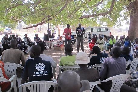 UNMISS conducting a community outreach activity in Abinajok district.