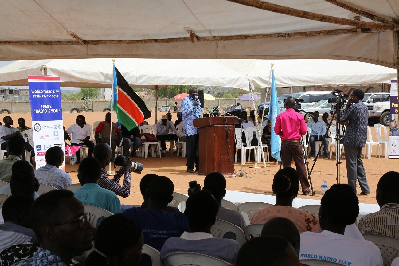 Alfred Taban, the Chairperson of the Association for Media Development in South Sudan (ADMISS), speaking in Juba at today's celebration of World Radio Day.