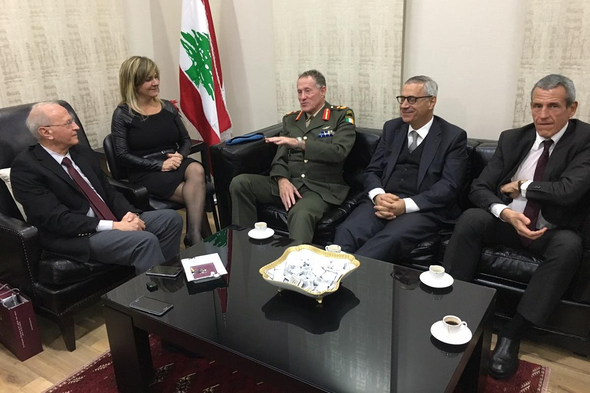 Col. Scopelliti, head of UNIFIL’s Italian Aviation team, chats with some young people who are visiting UNIFIL headquarters in Naqoura.