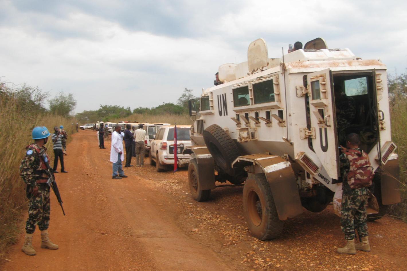 The UNMISS convoy on its way to Yei to meet local stakeholders.