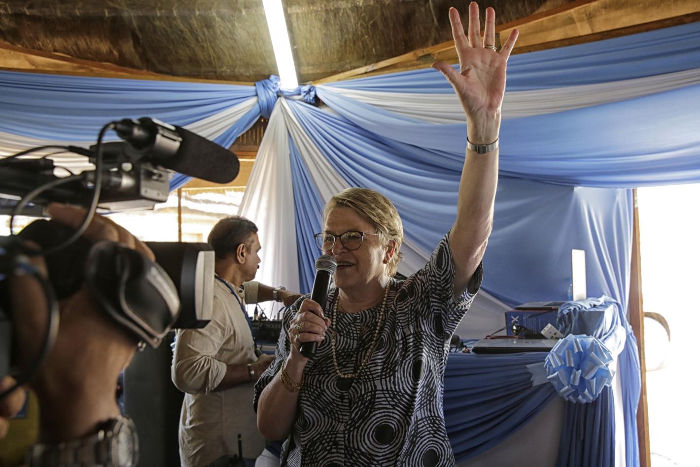 The mood somehow managed to be simultaneously solemn and relaxed as the UNMISS Special Representative of the Secretary-General (SRSG) Ellen Margrethe Loej on Monday bid farewell to media and UNMISS staff. “I have not given up…