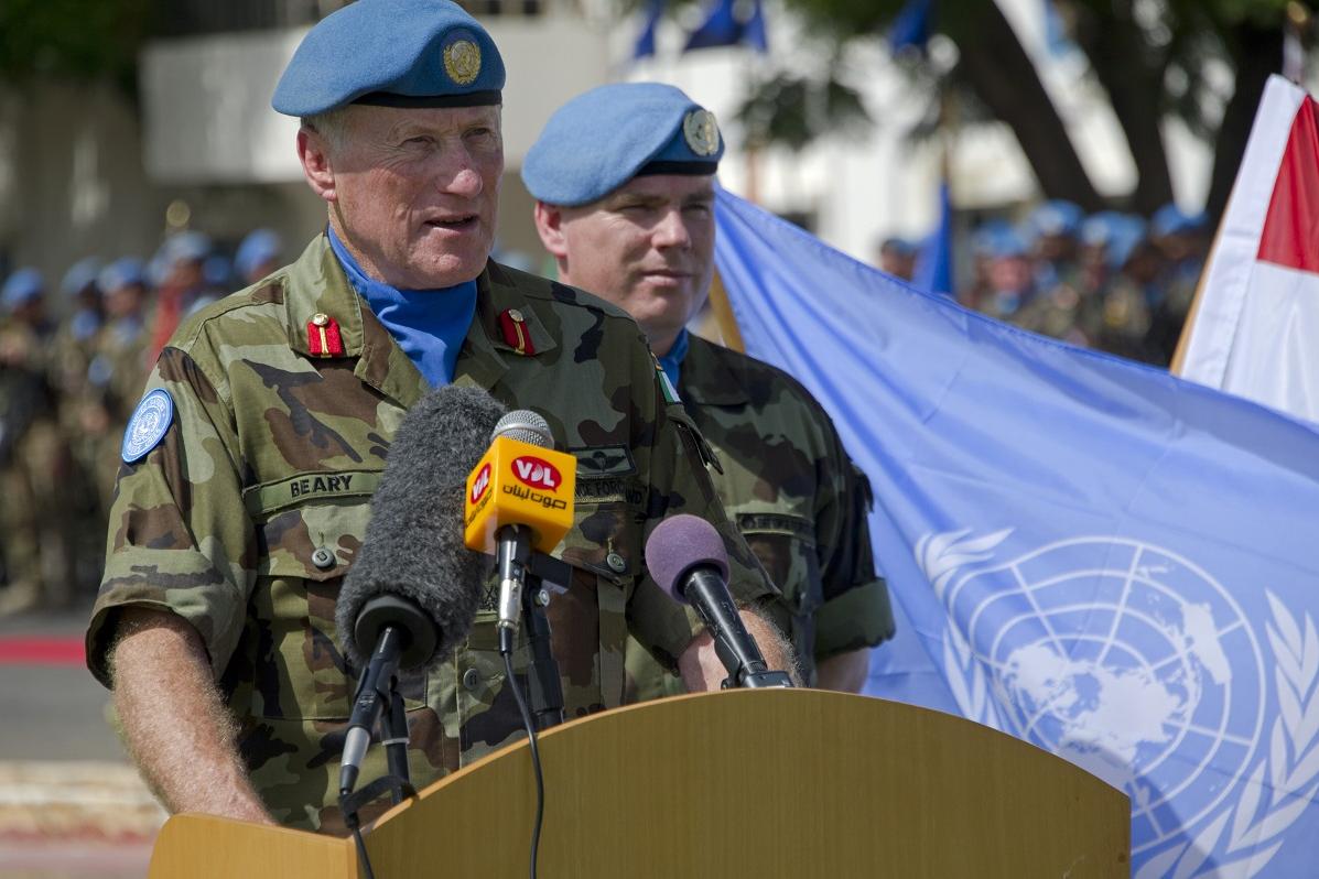 UNIFIL Head of Mission and Force Commander, Major General Michael Beary addresses the audience at the event for International Day of Peace held at UNIFIL headquarters in Naqoura, south Lebanon.