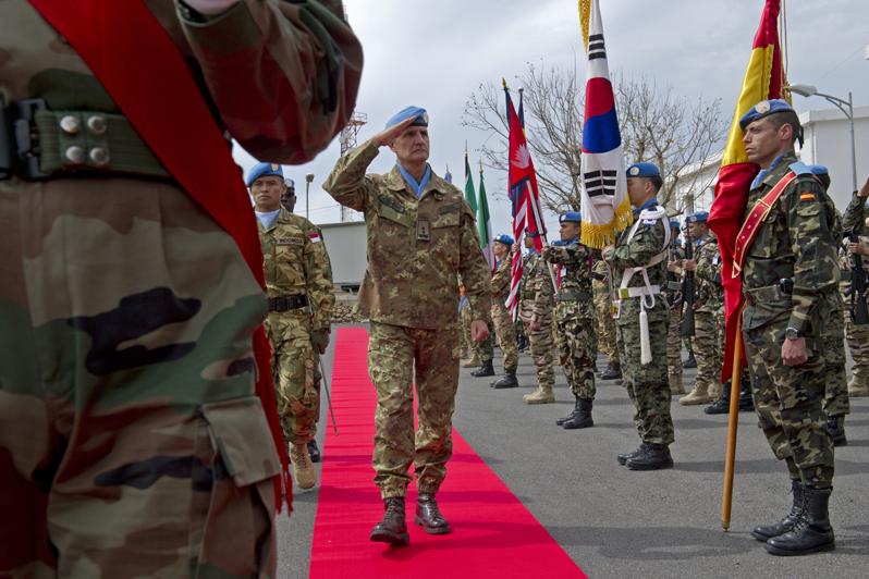 UNIFIL Head of Mission and Force Commander Major-General Paolo Serra saluting the Guard of Honor during the ceremony of establishment of the United Nations Interim Force in Lebanon