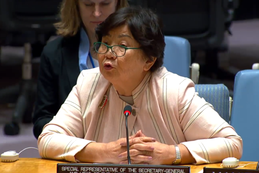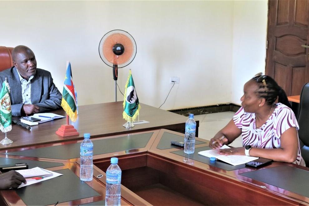 The head of the United Nations Mission in South Sudan’s Juba Field Office, Njoki Rahab Kinyanjui, discusses the need for further efforts to prevent and respond to sexual and gender-based violence during a visit to the Yei One Stop Centre for survivors in Central Equatoria. Photo by Taban Geofrey Koma Alfred/UNMISS.