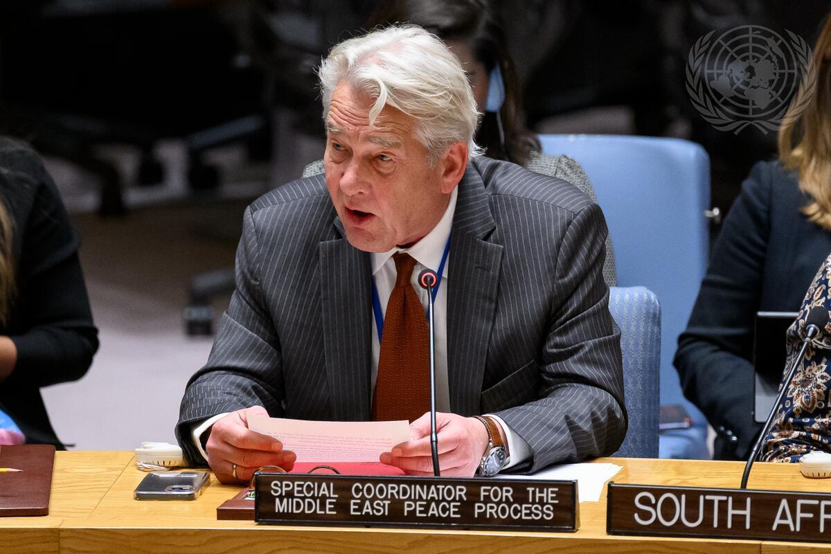 Tor Wennesland, UN Special Coordinator for the Middle East Peace Process and Personal Representative of the Secretary-General, briefs the Security Council meeting on the situation in the Middle East, including the Palestinian question. (UN Photo/Loey Felipe - 29 May 2024)