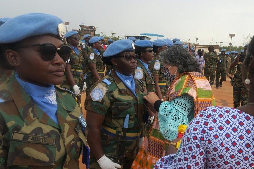 Female troops are key to the peacekeeping efforts of Ghana's contingent in Unity State. They, and their male colleagues, were recently awarded medals for their great performance. Photos: Roseline Nzelle Nkwelle/UNMISS