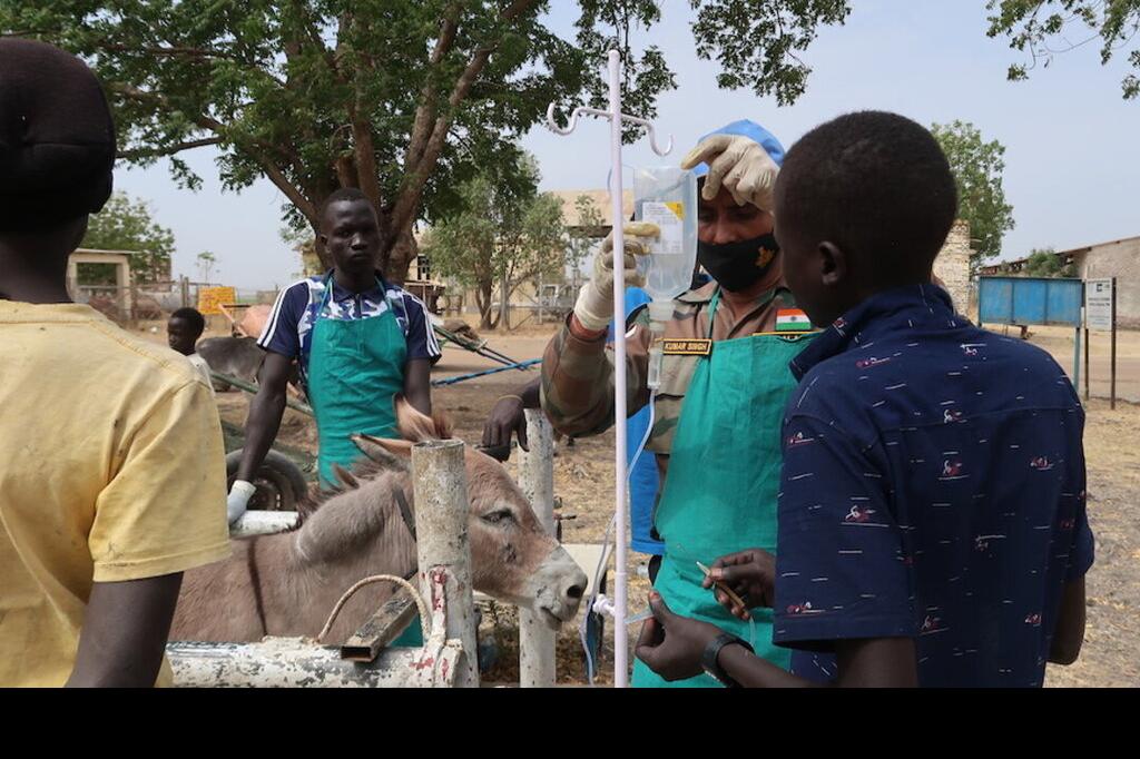 Under the Malakal sun, one can easily become dehydrated. Indian peacekeepers made the life of this particular donkey a lot better. Ines Surwumwe/UNMISS