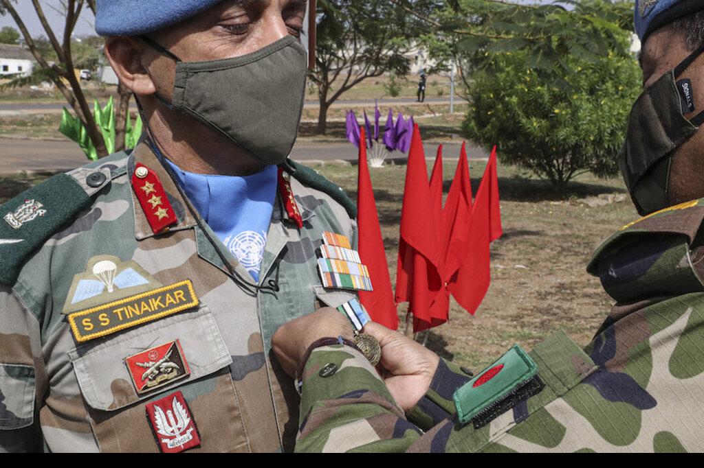 Even a Force Commander is keen on receiving (another) UN peacekeeping medal. Outgoing Lieutenant-General Shailesh Tinaikar is no exception. Photos: Isaac Billy and Gregorio Cunha/UNMISS
