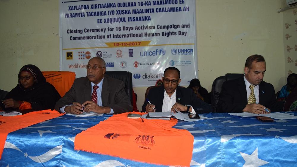 Speaking on behalf of UN Family, UNSOM/UNDP Head of Office, Sayed Sahibzada said "women continue to suffer discrimination, violence and persecution”, “so do ethnic, racial and religious minorities and migrants”. He stated that internal conflicts continue to produce horrendous and widespread human rights abuses. He added that Puntland had made significant steps towards the promotion and protection of human rights.
