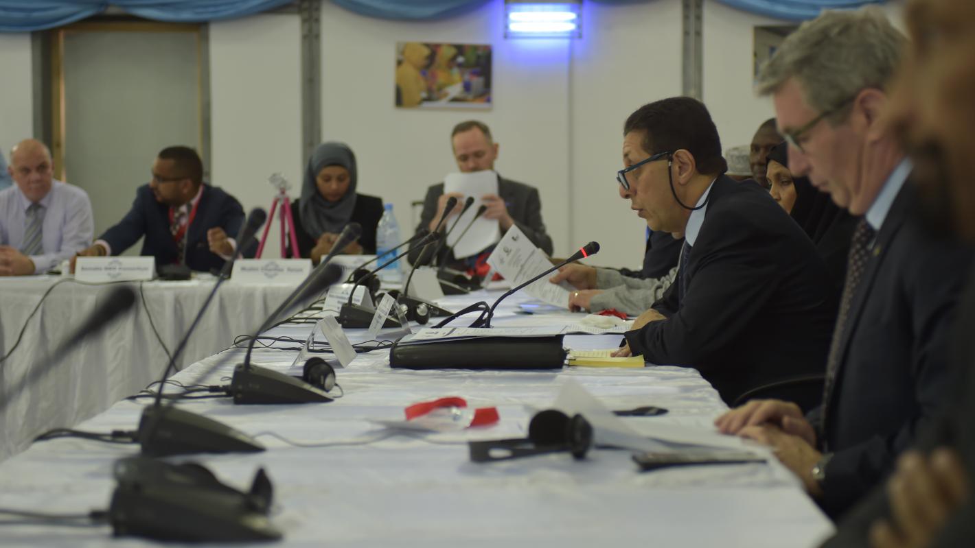 The Assistant Secretary-General for Humanitarian Affairs of the OIC Hesham Yussef, addressing participants at a meeting to scale up humanitarian relief for drought victims in Somalia. Mogadishu April 11, 2017. UN Photo