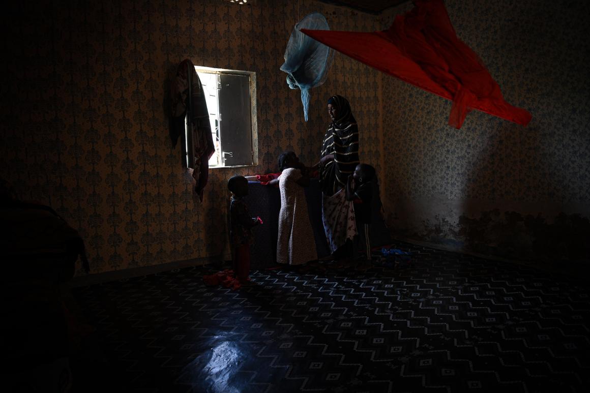 Shown here, Ms. Abdirahman speaks with some of her children at her host family’s home in Garowe.