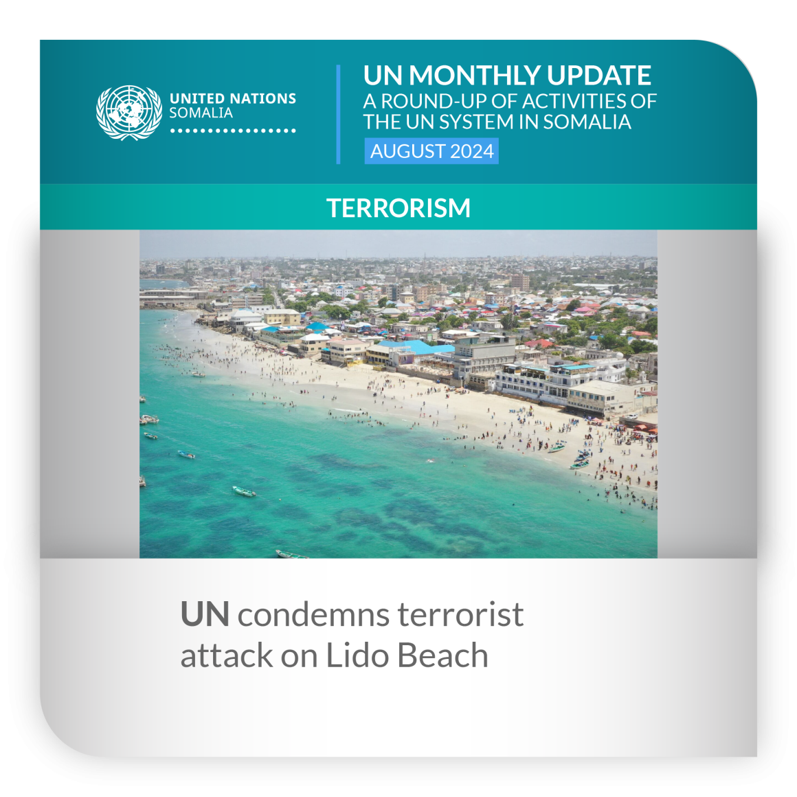The United Nations in Somalia strongly condemned the Al-Shabaab terrorist attack that took place at Mogadishu’s Lido Beach in early August, reportedly killing at least 32 people and injuring many more.