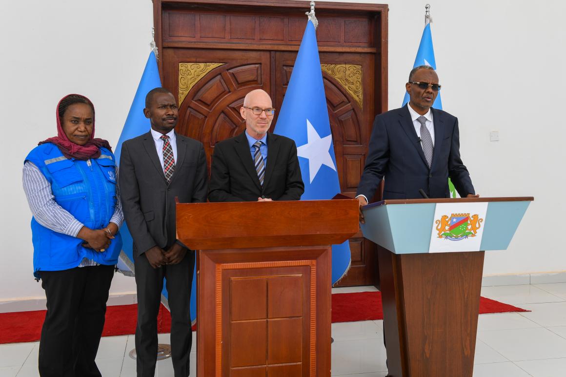 The UN Special Representative’s remarks were delivered at a joint media encounter with South West State’s President Abdiaziz Hassan Mohamed ‘Laftagareen,’ with whom he had met earlier in the Federal Member State’s temporary capital, Baidoa.