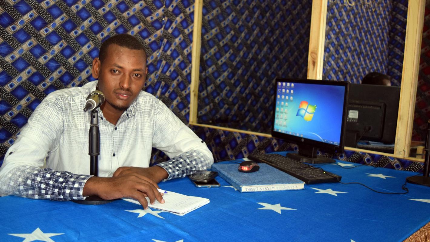 To acquire practical experience, he joined the staff of a local radio station called Democratic Media Concern as a volunteer in 2004. He was hired two years later as a staff reporter at the station, which had been renamed Warsan Radio.